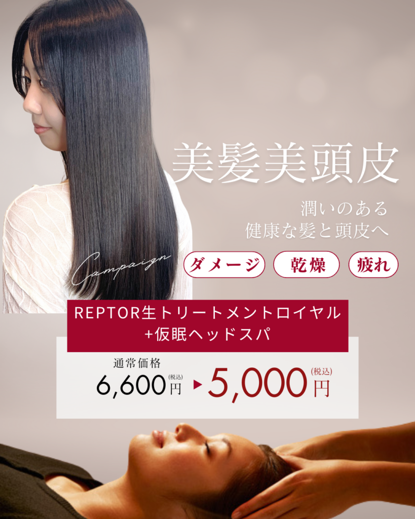 前回とても人気だった『REPTOR生トリートメントロイヤル&仮眠ヘッドスパ』のコンボをお得な料金でご提供いたします!