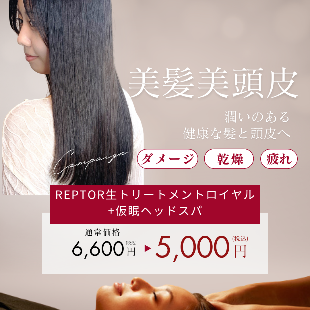 前回とても人気だった『REPTOR生トリートメントロイヤル&仮眠ヘッドスパ』のコンボをお得な料金でご提供いたします!